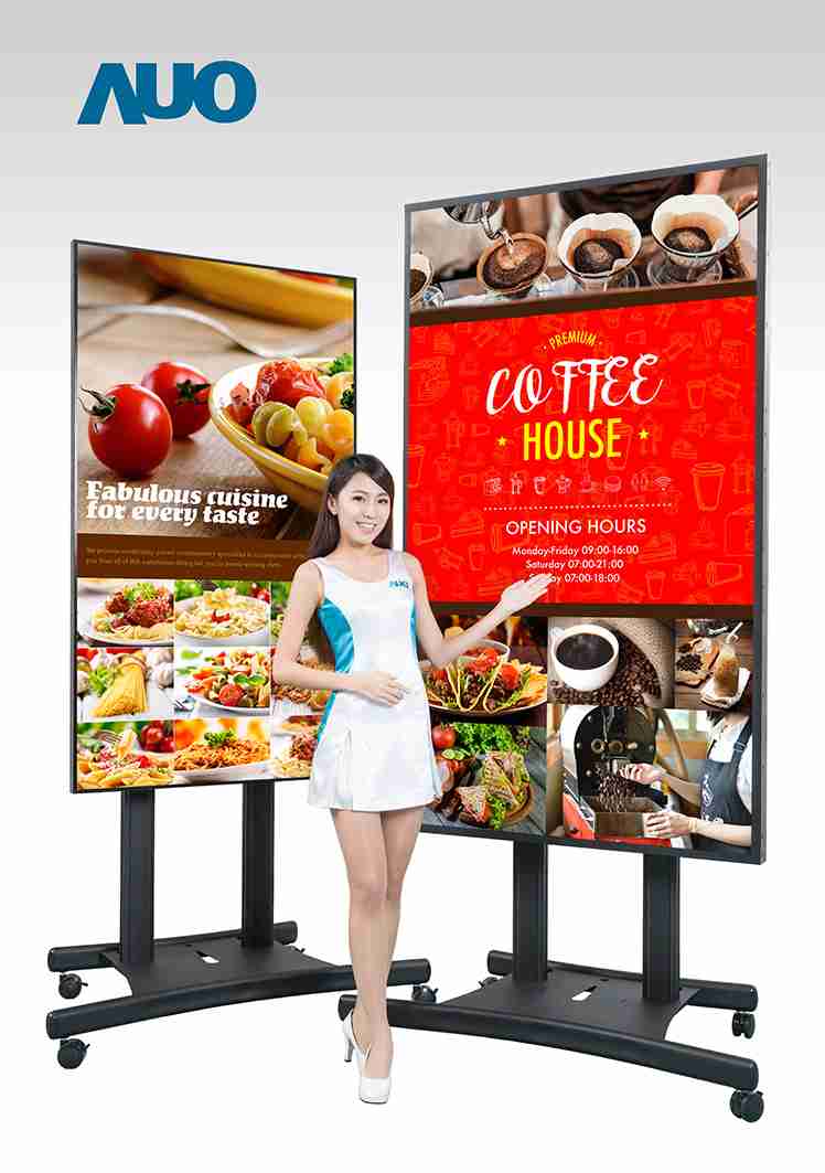 本次领先业界(*) 推出 85寸 UHD 4K 户外型超大显示器,,具备 2500 nits 超高亮度和连续开机操作的稳定性能,,,在阳光直射环境下影像仍然鲜明清晰,,适合户外候车亭及高级精品店等广告播放使用。。。55寸 Full HD 拼接墙显示器的极窄边框技术,,让相邻屏幕拼接后的边框宽度仅 1.8mm,,,,能因应各种空间灵活设计为不规则拼接墙,,搭配色彩及亮度调校技术呈现完美的画面均匀度,,,,打造独一无二的品牌形象广告。。。本次也将展出一系列的超宽型公共讯息显示器,,,尺寸从 28.6寸至 42寸,,,皆具备高解析、、高亮度、、、高信赖性等特色,,,可配置于半户外环境,,,,作为交通信息显示器提供旅客实时候车信息及广告讯息、、于零售商店展示超宽型广告,,或打造成智能商店货架以互动感应设计呈现商品讯息,,增加消费者购物乐趣。。