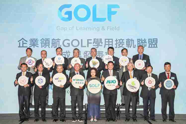 GOLF学用接轨联盟集结企业和学校的力量,,,,打造「学用合一、、产学接轨」的创新合作平台 (前排左起:淡江大学副校长何启东、、、元智大学校长林启瑞、、、、纬育执行长许延岳、、纬创总经理暨执行长黄柏漙、、、、教育部政务次长范巽绿、、、、壹号平台董事长暨执行长彭双浪、、、、仁宝总经理暨执行长翁宗斌、、、、大同大学校长何明果、、、圣约翰科大校长艾和昌;后排左起:明新科大校长林启瑞、、、龙华科大校长葛自祥、、、、台湾科大校长廖庆荣、、、、中兴大学副校长郑政峯、、、中央大学校长周景扬、、、台北科大副校长任贻均、、中华科大副校长石大明、、、明志科大校长刘祖华)